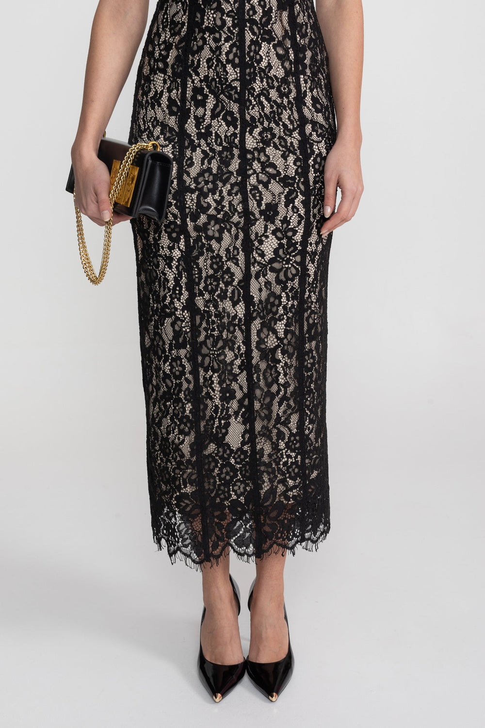 Midi-length hem with eyelash lace finish