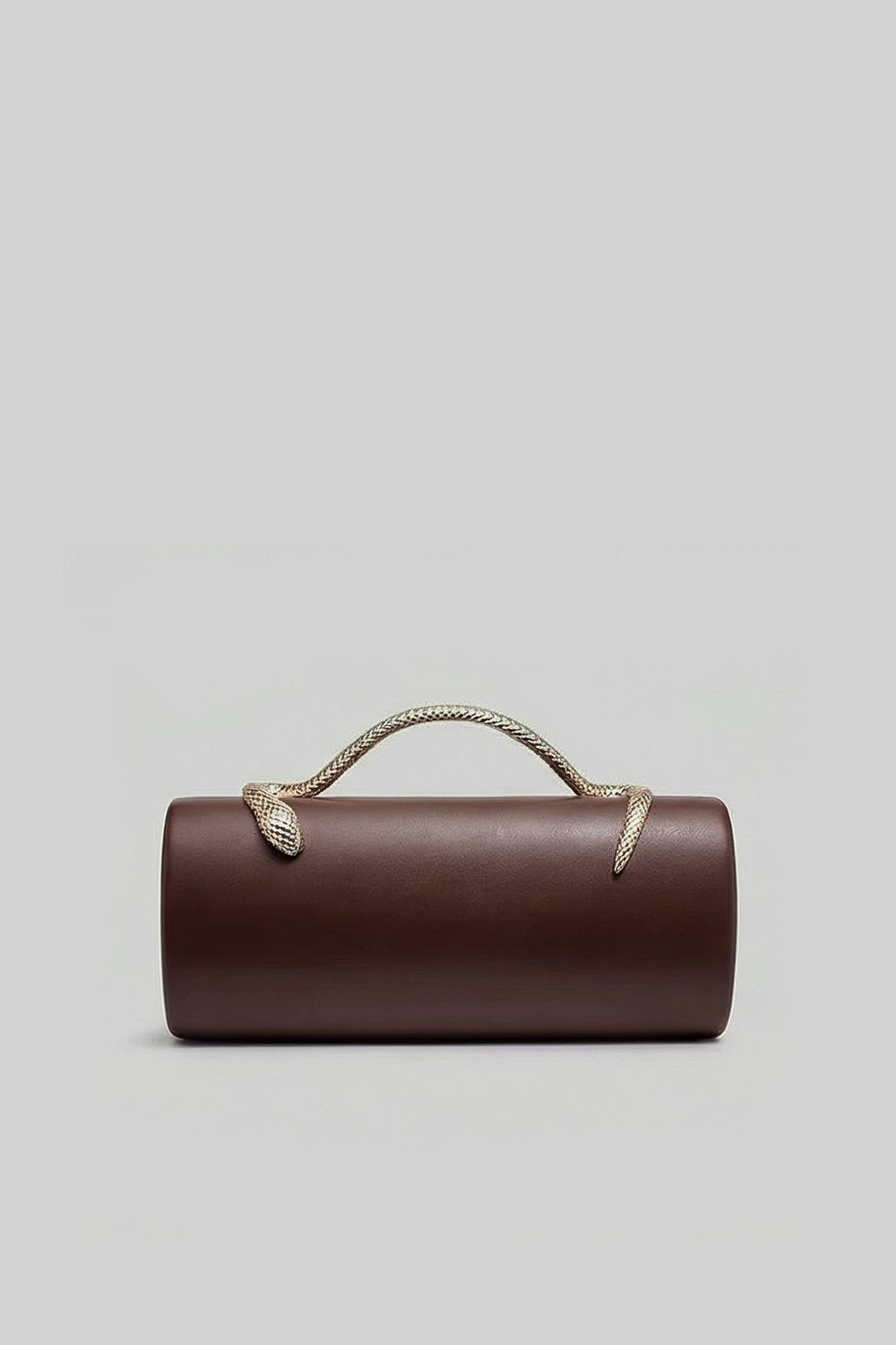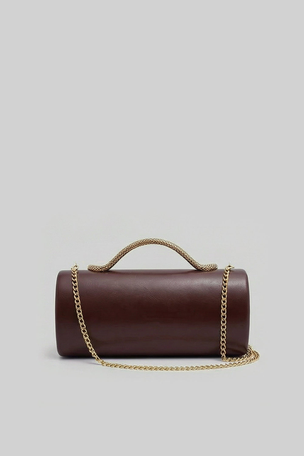 Brown Structured Clutch Bag with Snake Handle And Gold Chain